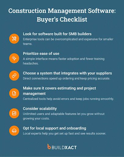 The best construction software depends on your business model and priorities. Large commercial contractors often turn to enterprise platforms like Procore, which offer advanced compliance tools and multi-year project tracking but come with a steeper learning curve and higher cost. For small- to mid-sized residential builders, Buildxact stands out. It’s purpose-built for residential workflows, making it easier to adopt and use.